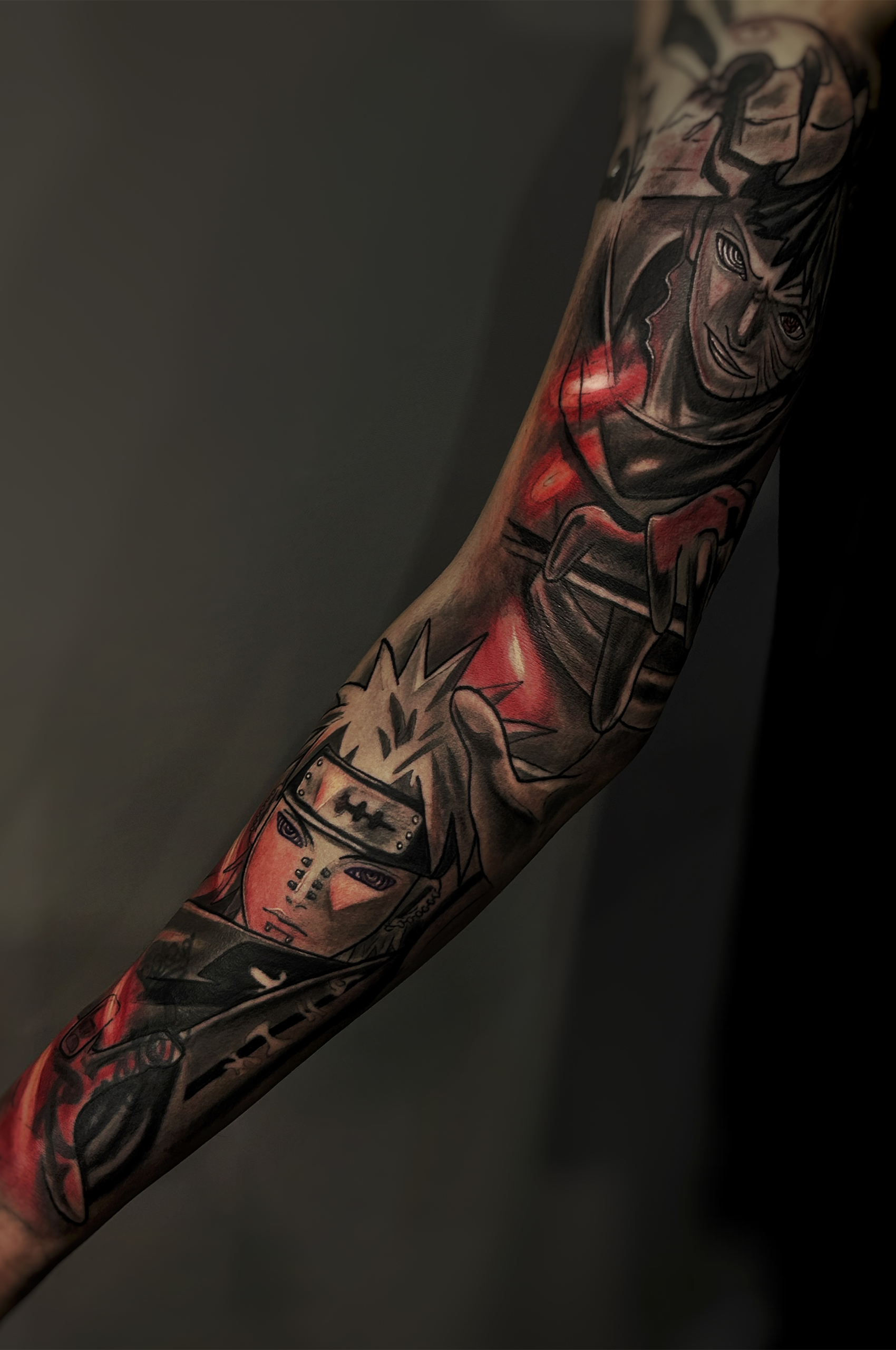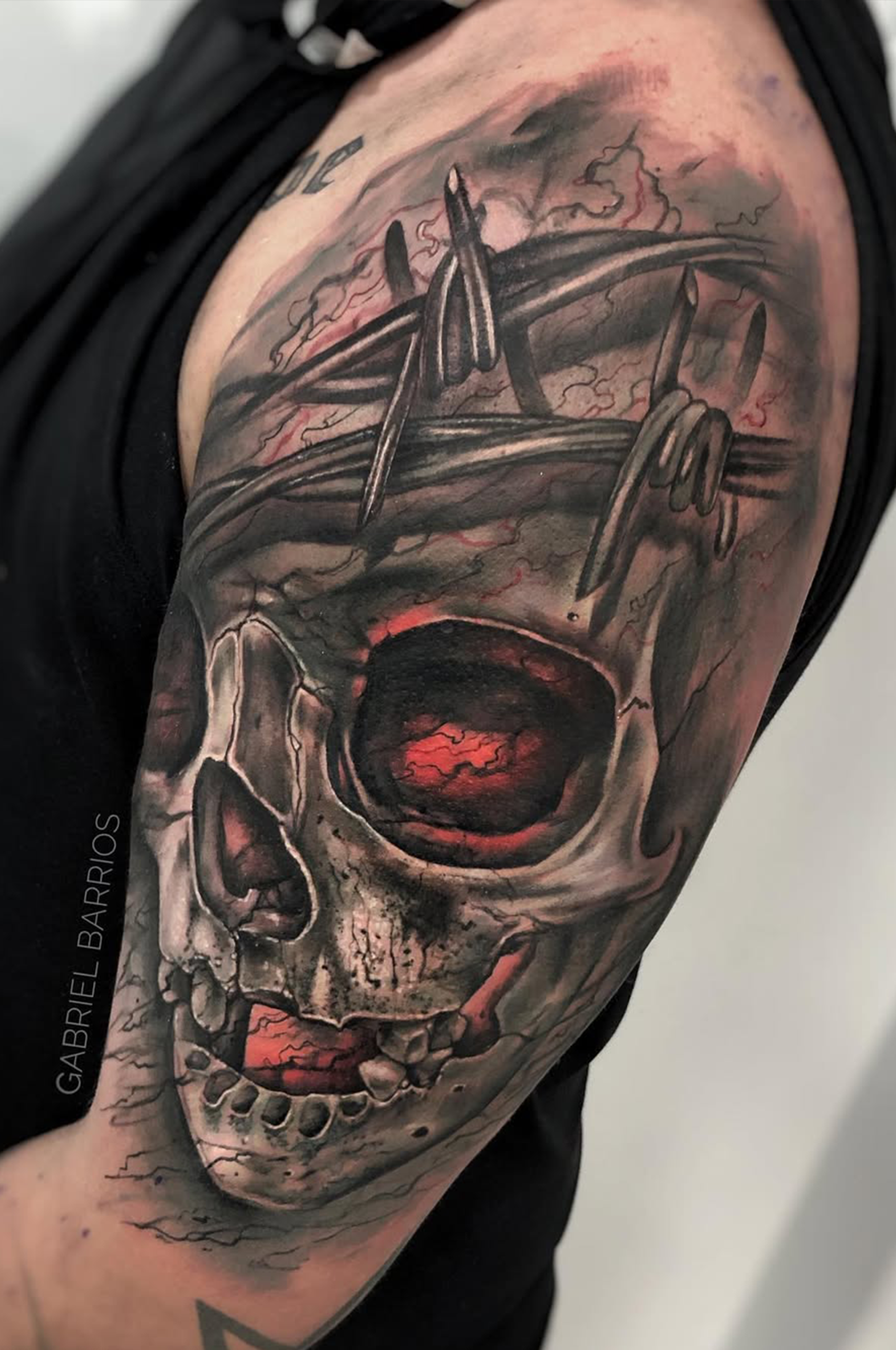 Gabriel Barrios es un artista español con más de 15 años de experiencia en el mundo del tatuaje, reconocido por su dominio del color, el black & grey y su particular fusión entre estética anime y surrealismo contemporáneo. Su trabajo destaca por la intensidad cromática, la riqueza de detalles y la capacidad de transformar conceptos complejos en composiciones visualmente impactantes.