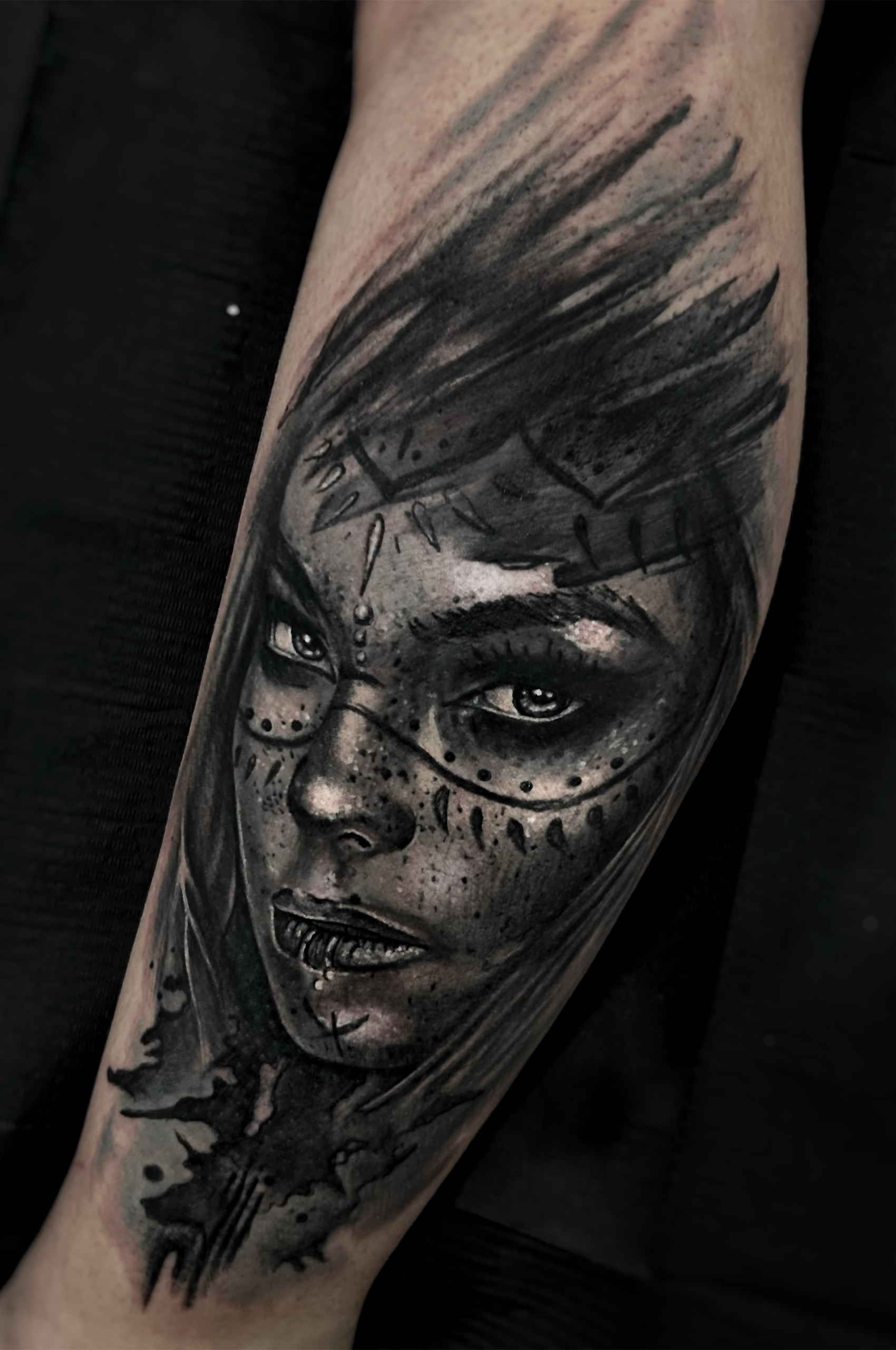 En black & grey, demuestra un control preciso del sombreado y del volumen, creando tatuajes elegantes, con profundidad y gran riqueza visual sin necesidad de color.